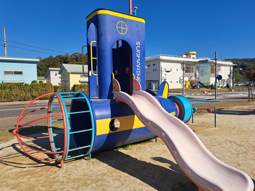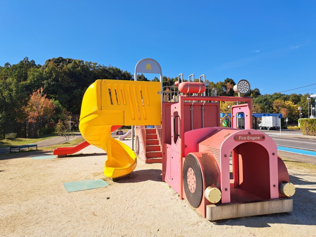 乗り物をモチーフにした遊具がたくさんあるエリアです!